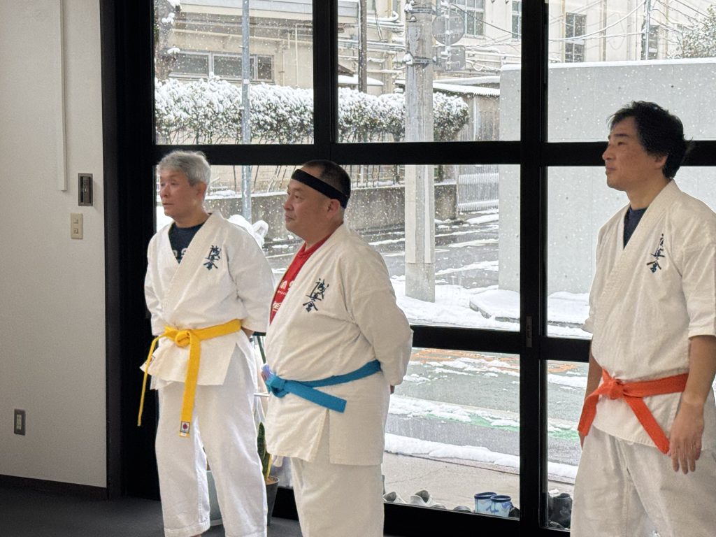 雪の降る中行われた型練習試合・審判講習会