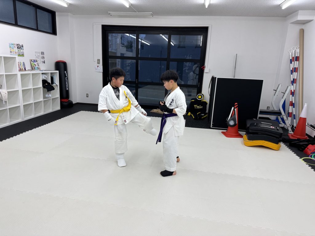黄帯のN弥、記念すべき人生初の組手です。